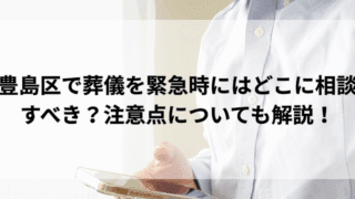 葬儀豊島区で葬儀を緊急時にはどこに相談すべき?注意点についても解説! 豊島区の葬儀にて緊急でお困りの方へ。急な訃報時にまずすべきことから、24時間対応の葬儀社選び、費用相場までを分かりやすく解説。慌てず正しい対応ができるようサポートします。2025.10.21葬儀