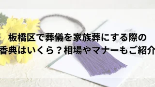 葬儀・葬式板橋区で葬儀の費用はいくらかかる?相場や葬儀社の選び方を解説! 板橋区で葬儀を行う場合にかかる費用相場を、家族葬や一般葬、火葬式など形式別にわかりやすく解説します。見積りの内訳や追加費用が発生しやすいポイント、費用を抑えるための考え方も整理し、初めて葬儀を検討する方でも判断しやすい情報をまとめています。2025.12.19葬儀・葬式