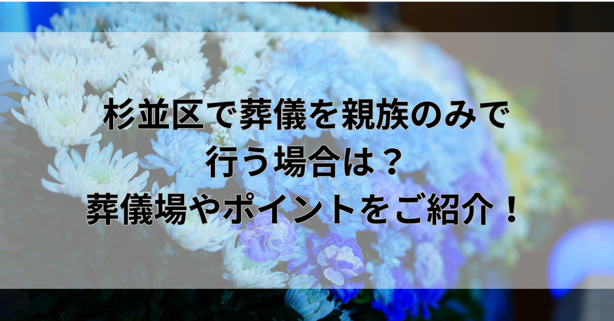 この記事では、杉並区で親族のみの葬儀を行う際の費用相場や注意点、選ばれている葬儀社を詳しく解説します。