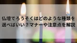また、夏の暑い時期であるため、日持ちしない生菓子や、溶けて仏壇を汚す可能性がある飴なども避けるのが賢明です。
