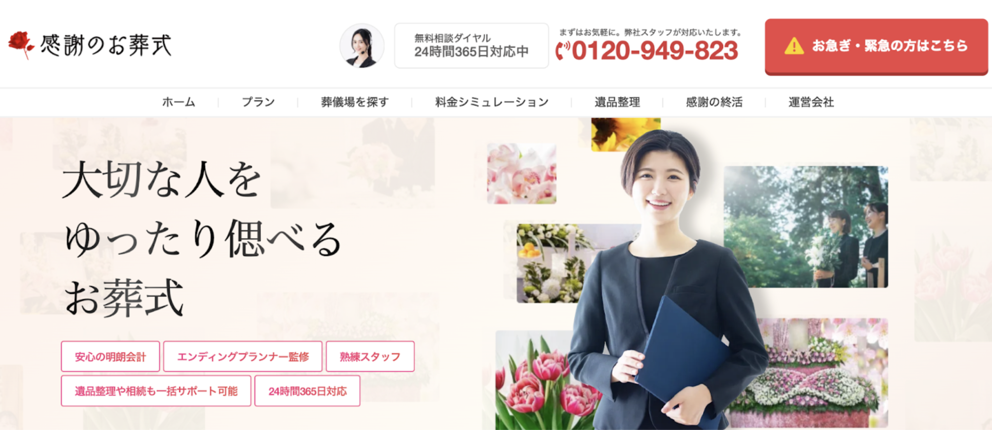 さらに、24時間365日相談可能な無料ダイヤルを設けており、初めての喪主や急な依頼にも対応可能。