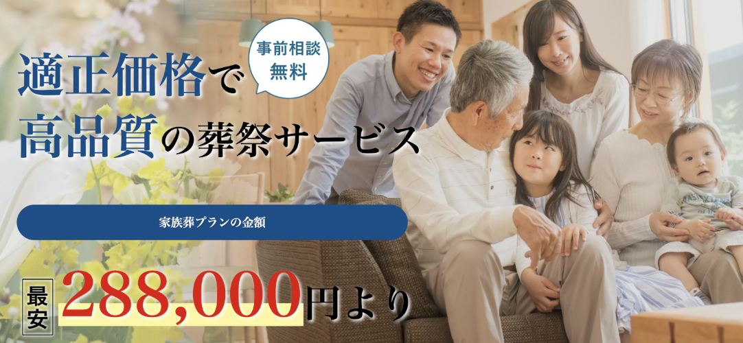 24時間365日対応の無料相談窓口を設け、火葬式・一日葬・家族葬といった多様なプランを適正価格で提案しています。