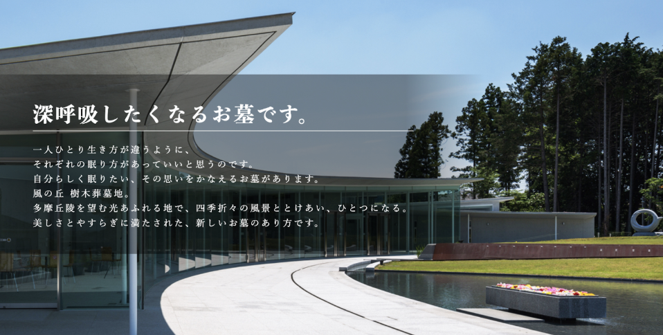 宗教・宗派を問わず利用でき、継承者不要の個人墓として安心です。多摩産材を使った木製骨壺や法要・供養にも対応し、環境と共生する永代供養の場として設計されています。