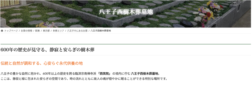本記事では、現地環境や費用対効果を徹底調査した上で、八王子市でおすすめの樹木葬霊園を厳選してご紹介します。