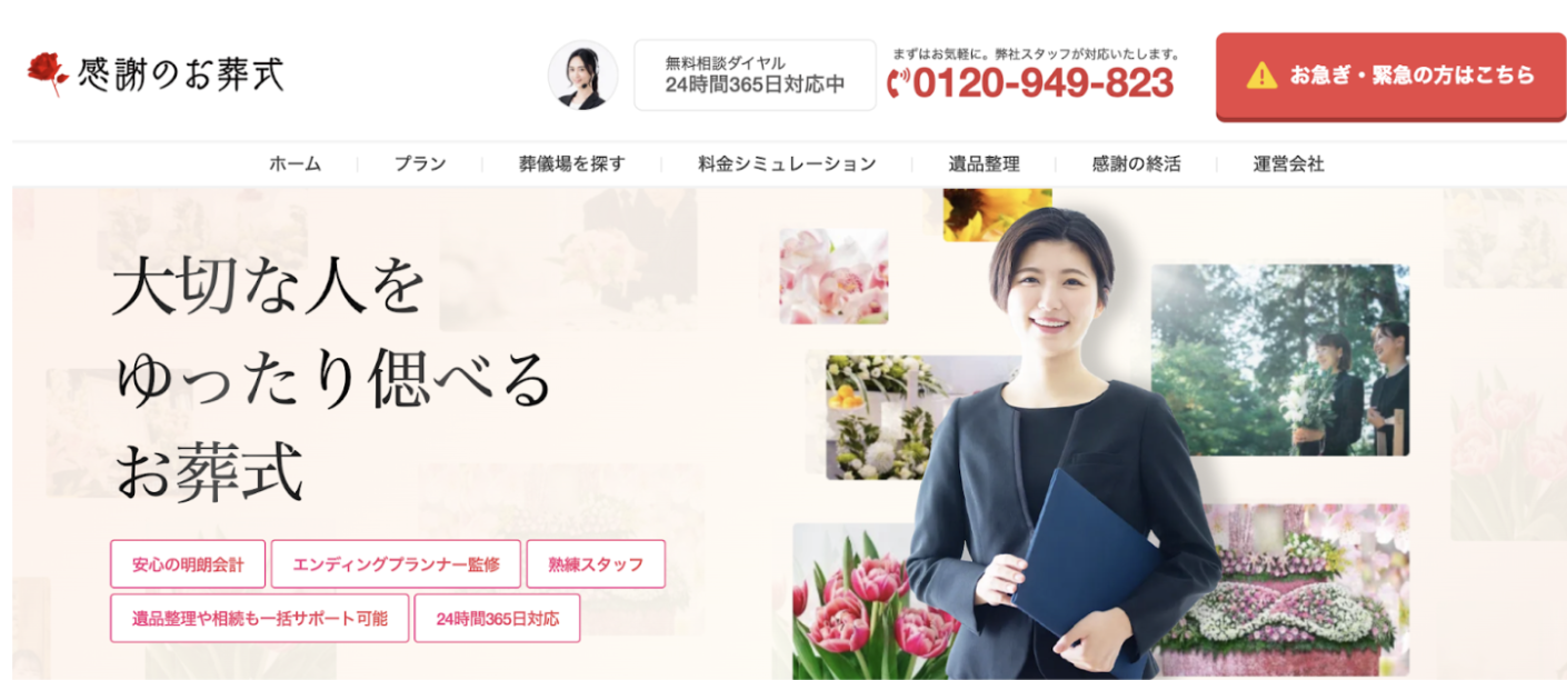感謝のお葬式は、東京都を中心に全国主要都市に対応する葬儀サービスで、明瞭な料金体系と多様なプランを特徴としています。