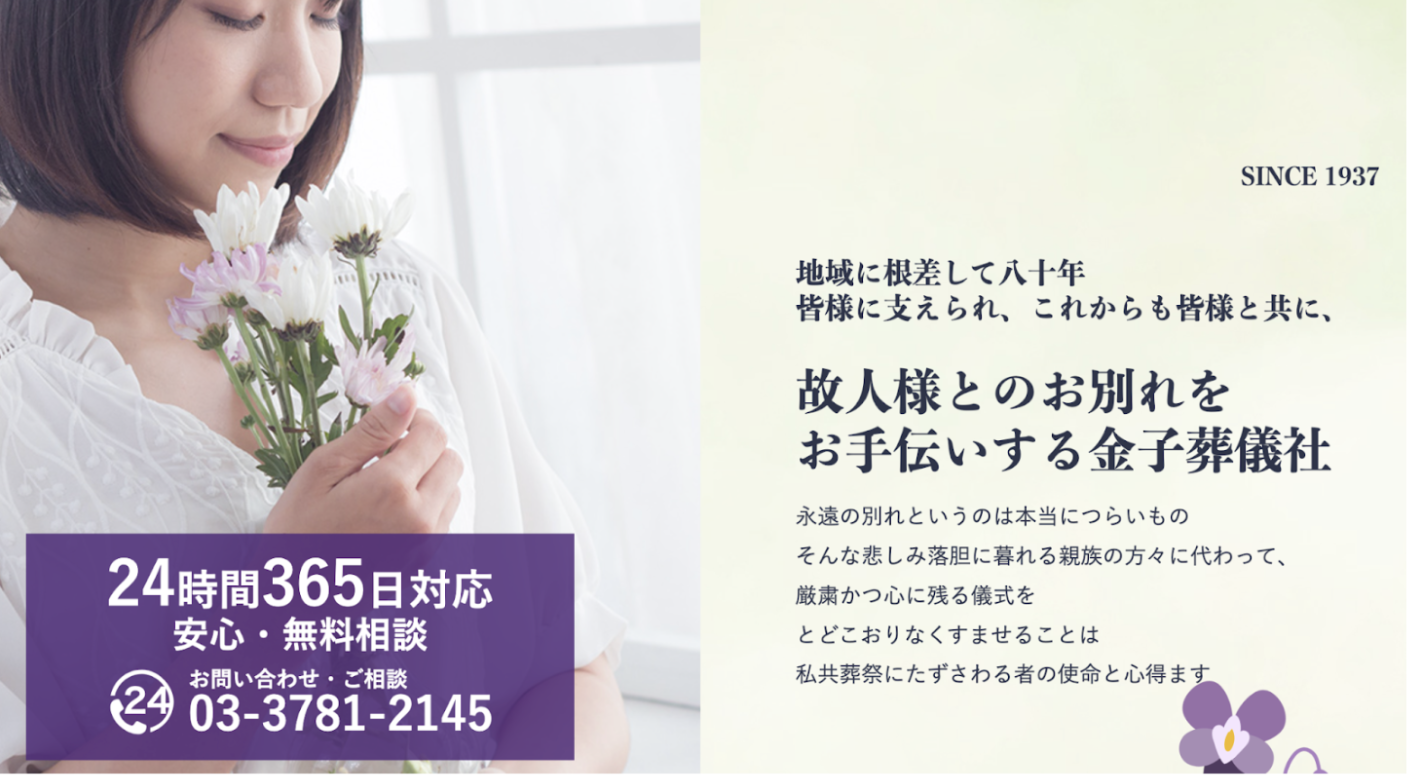 金子葬儀社は、東京都品川区中延で1937年創業の地域密着型の葬儀社です。