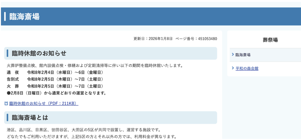 葬儀社を選ぶ際は、この臨海斎場の予約システムや当日の導線に習熟しているかを確認してください。