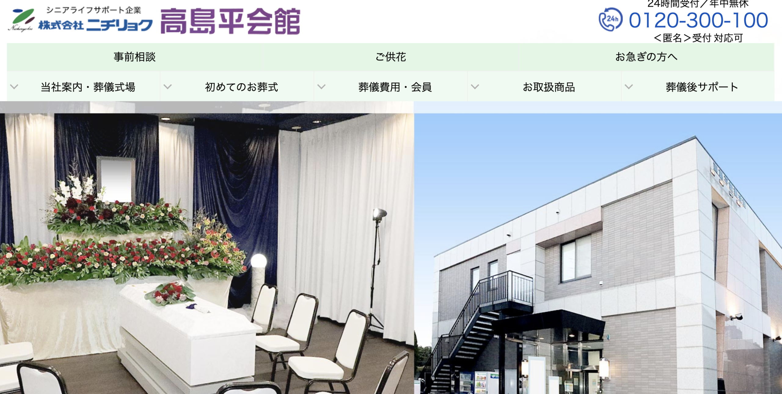株式会社ニチリョク(高島平会館)は、東京都板橋区の1日1組貸切型セレモニーホールを拠点に、緊急搬送から家族葬・一日葬・火葬式まで対応する葬儀サービスを提供しています。
