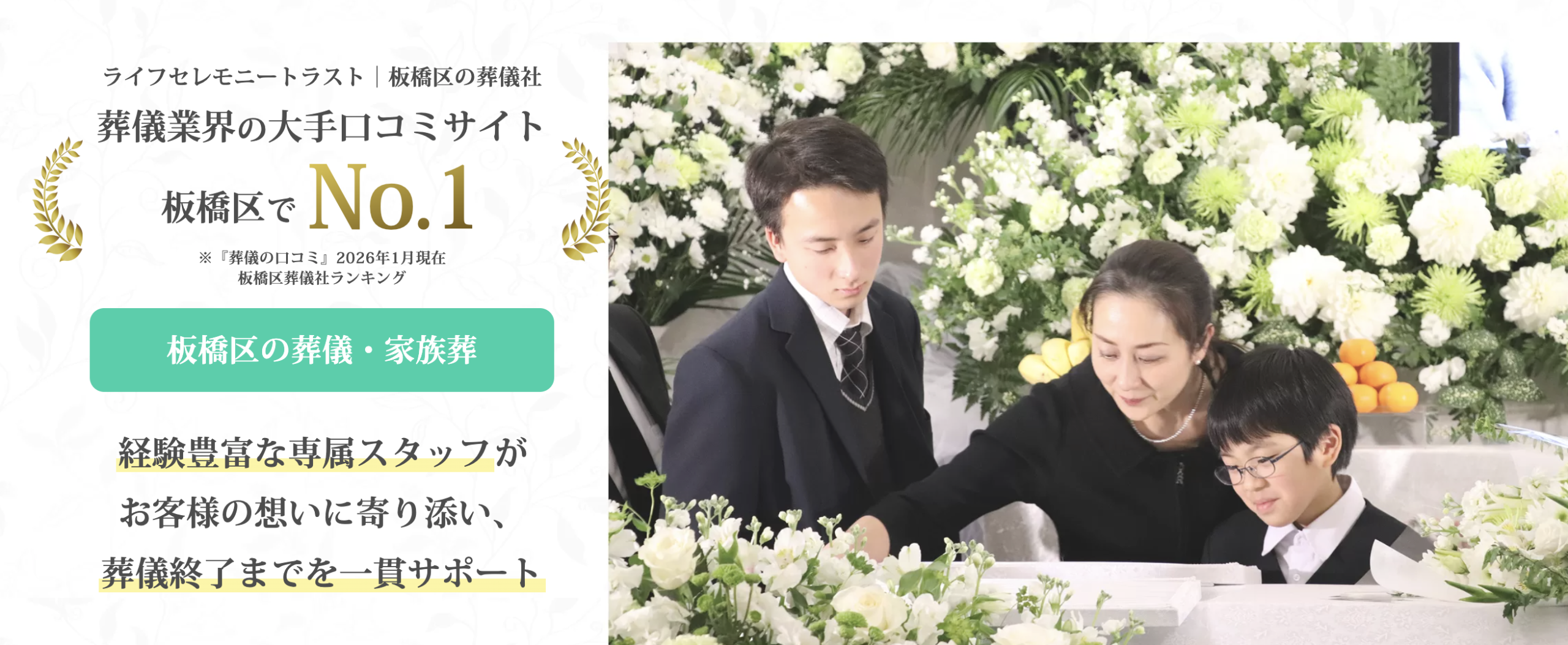 ライフセレモニートラストは、東京・板橋区を基点として葬儀に関する相談から搬送、葬儀当日の運営、追善供養まで一貫してサポートする葬祭サービスを提供しています。