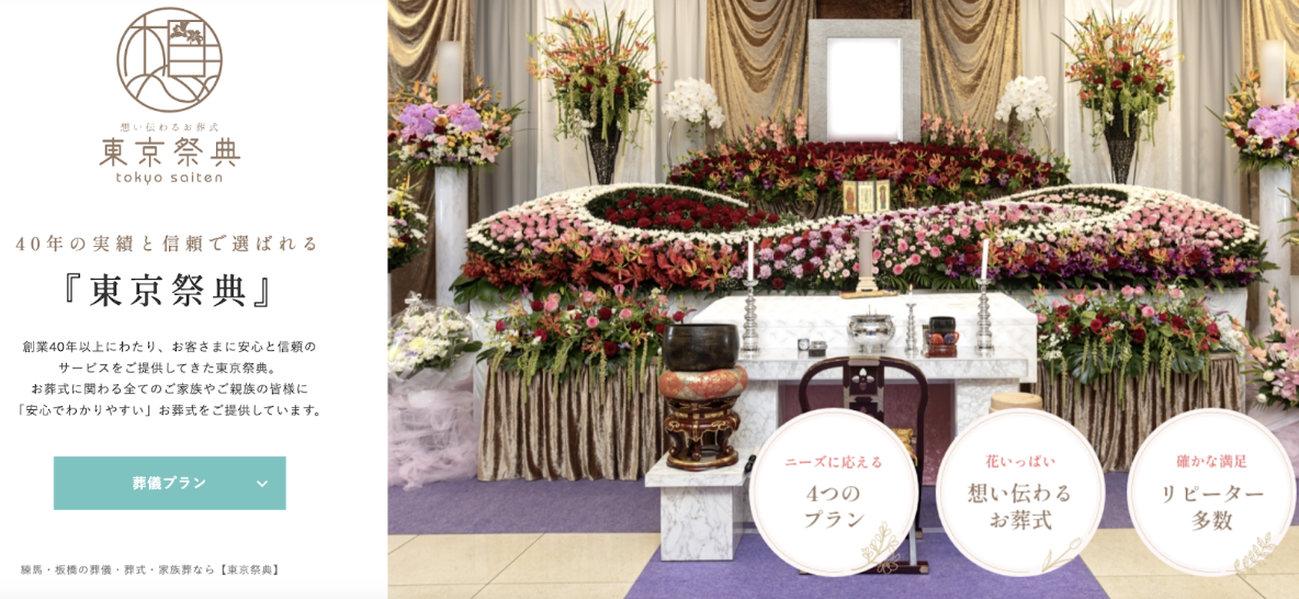 東京祭典は、練馬区を拠点に東京都23区〜近郊で展開する地域密着型葬儀社で、創業40年以上の実績を持つ信頼感が特徴です。
