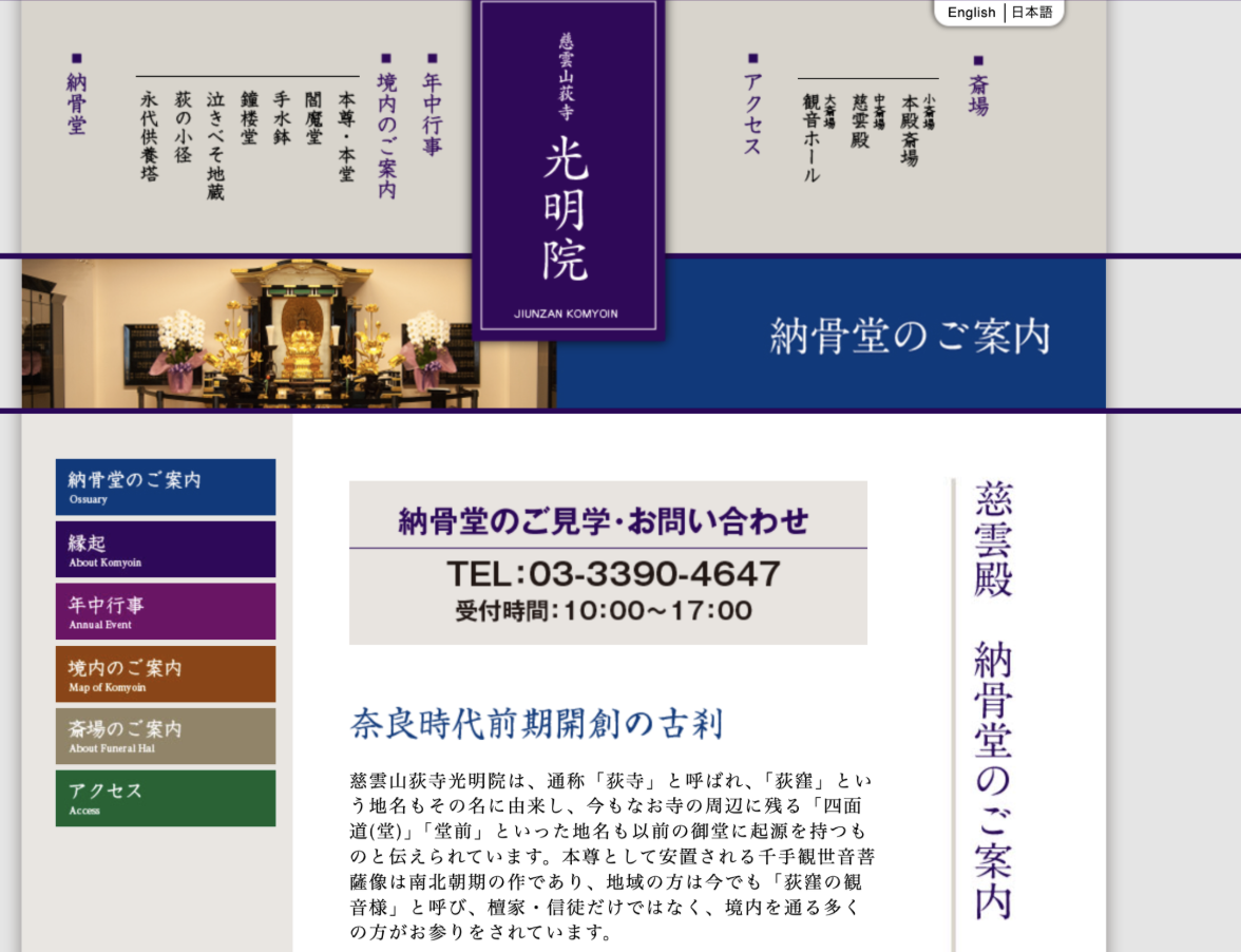 | 慈雲山荻寺光明院 | 東京都杉並区上荻 | 一般納骨、永代供養 | 公式サイト |