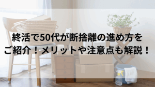 終活終活で50代が断捨離の進め方をご紹介!メリットや注意点も解説! 50代からの終活は断捨離が重要です。物を減らすことで暮らしが整い、老後の不安や家族への負担を軽減できます。本記事では断捨離の進め方や注意点、メリット・デメリットを具体的に解説し、心豊かな生活を実現するための実践的なヒントを紹介します。2025.09.29終活