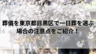 葬儀葬儀を東京都目黒区で一日葬を選ぶ場合の注意点をご紹介! 葬儀を東京都目黒区で検討する方へ。一日葬の費用相場や流れやよくある質問などをご紹介。準備の負担を抑えつつ失礼のない葬儀を実現するために、メリットと注意点をまとめ、納得できる選択をサポートします。2025.10.01葬儀