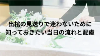 葬儀・葬式出棺の見送りで迷わないために知っておきたい当日の流れと配慮 出棺の見送りで迷わないために、当日の流れや立ち位置、配慮すべき行動を分かりやすく解説。初めて参列する方でも不安なく対応できるよう、意味や注意点、よくある疑問まで網羅的にまとめています。葬儀当日に慌てないための基礎知識として、事前確認のポイントも紹介します。2026.01.27葬儀・葬式